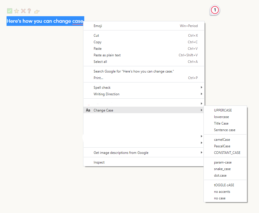 It allows you to highlight a piece of text, right click on that text, and in the pop-up menu you’ll see an option for “Change Case” - where you can convert that highlighted text into all caps, back into all lower case, you can captilize the first letter of each word, etc - without having to rewrite the whole sentence/piece of text etc.