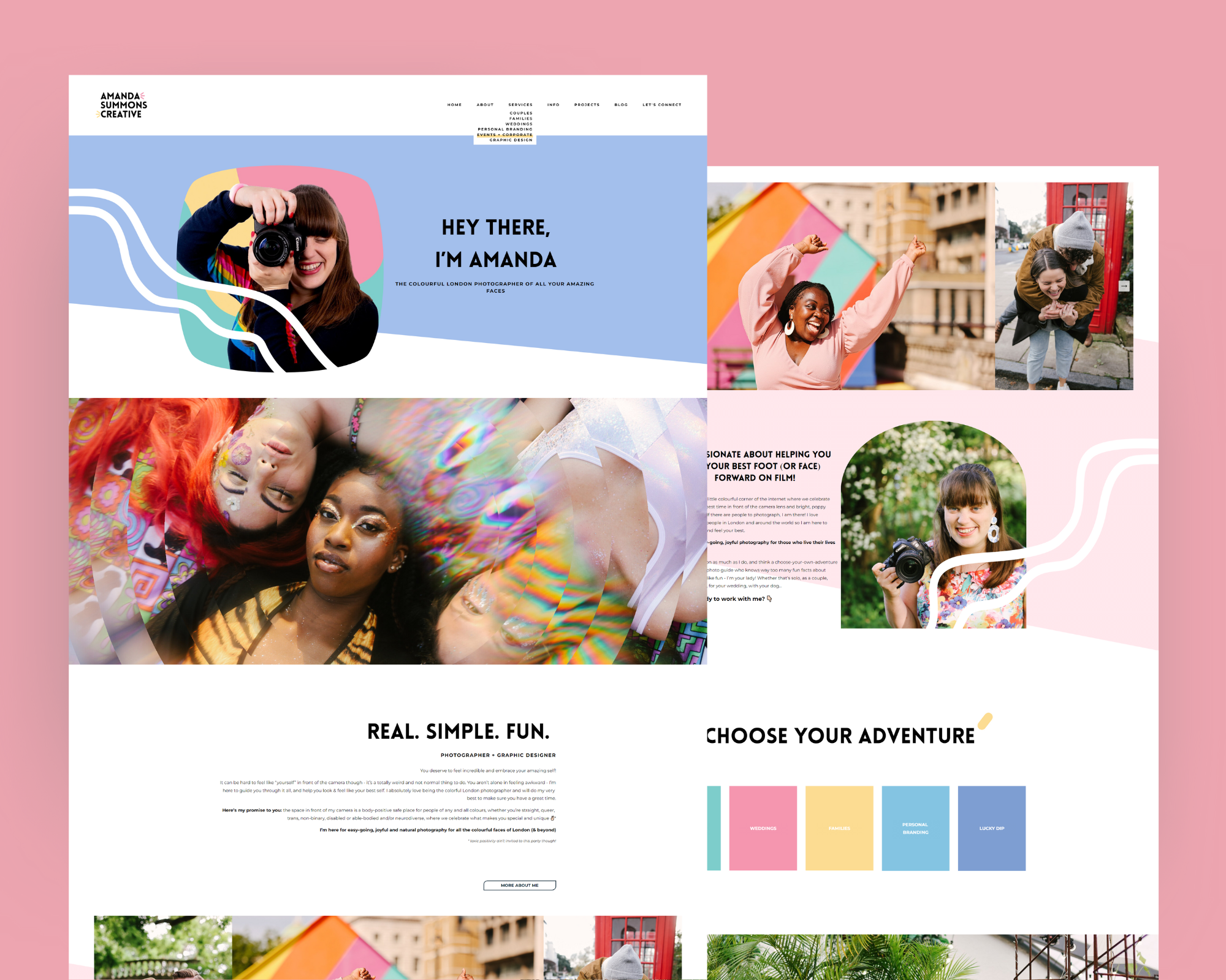 But her website was really not showcasing her incredible personality or her work, and when she came to me and asked for help I was SO EXCITED to help bring her colourful brand to life.